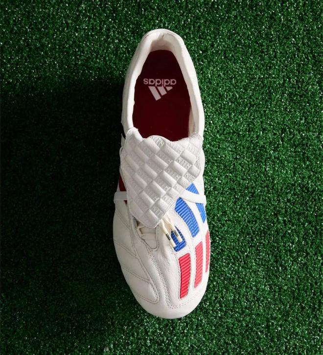 其中Predator Mania是在2002年世界杯上声名鹊起一款标志性的足球鞋,其标志性的折叠鞋舌上印有Kith Monogram图案,阿迪达斯条纹上则印有Kith FC的图案。